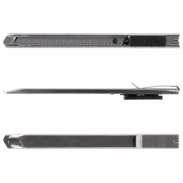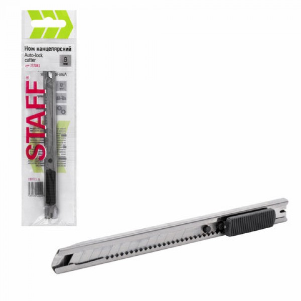 Нож канцелярский 9 мм STAFF 'Manager', усиленный, металлический корпус, автофиксатор, клип, 237081