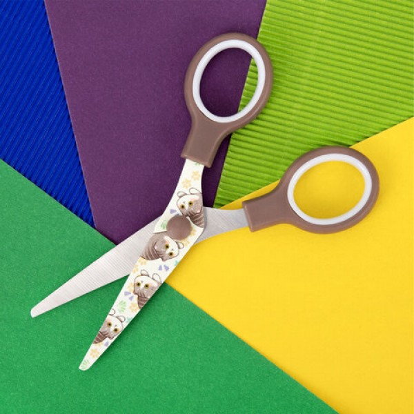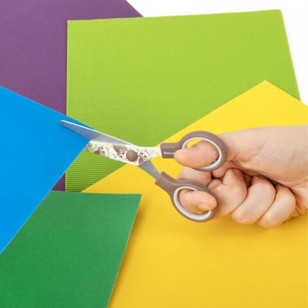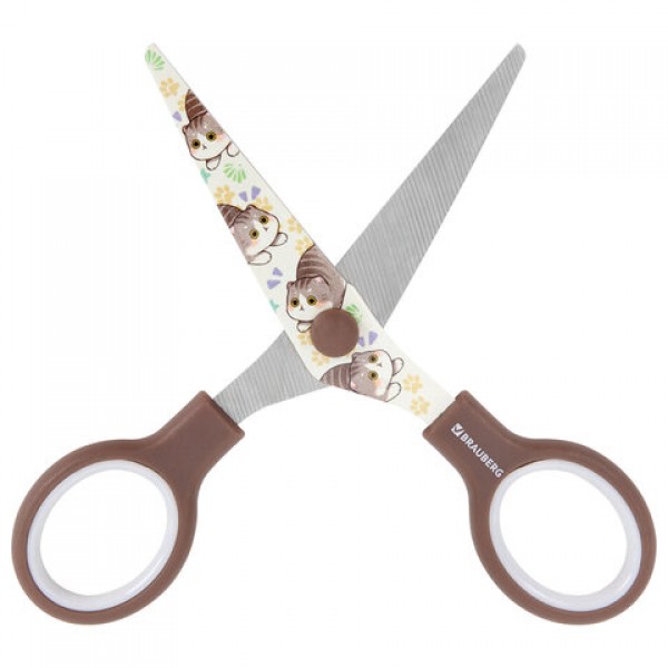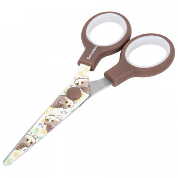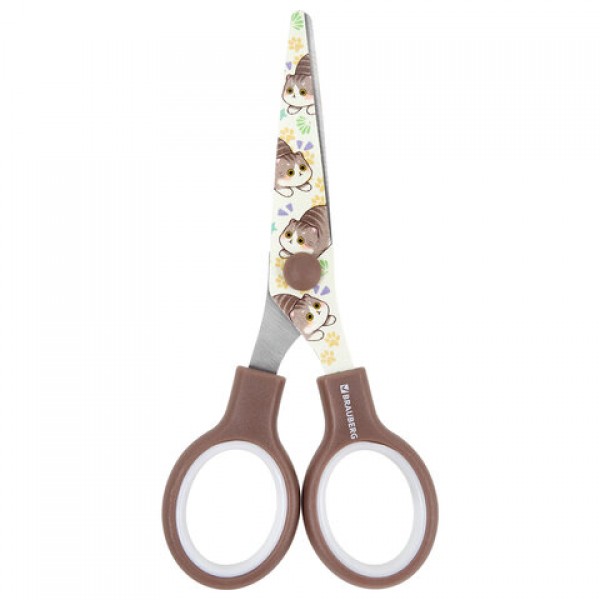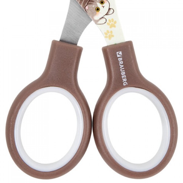 Ножницы 130 мм, коричневые, с цветной печатью 'Милые котики', BRAUBERG CUTE CATS, 238957