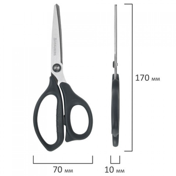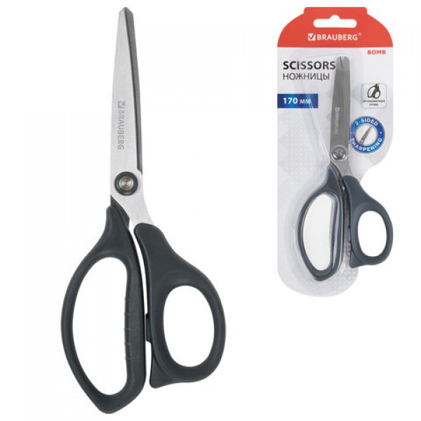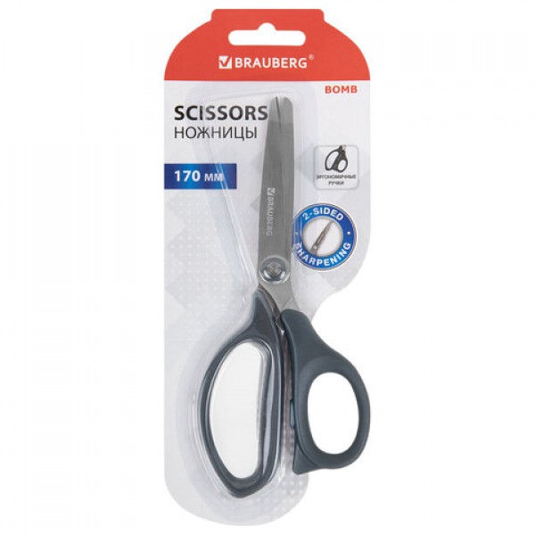 Ножницы BRAUBERG 'BOMB', 170 мм, графитовый цвет, 2-сторонняя заточка, эргономичные, 238857