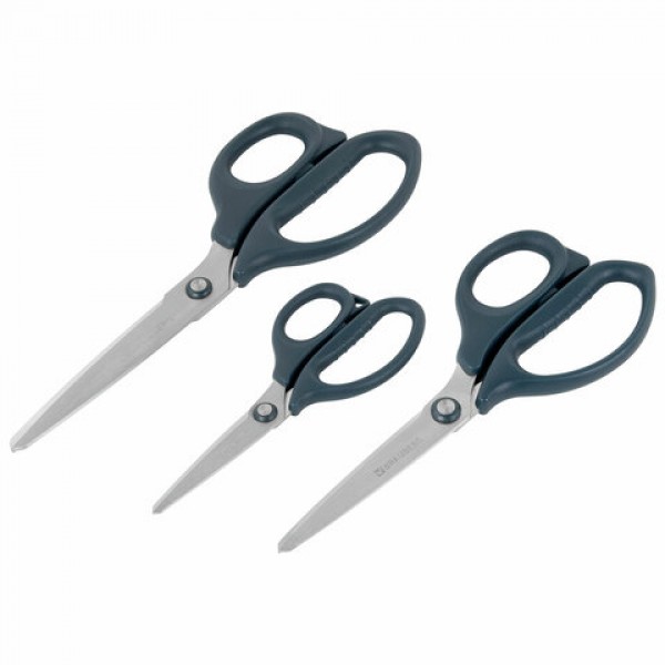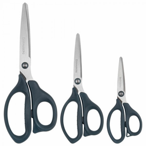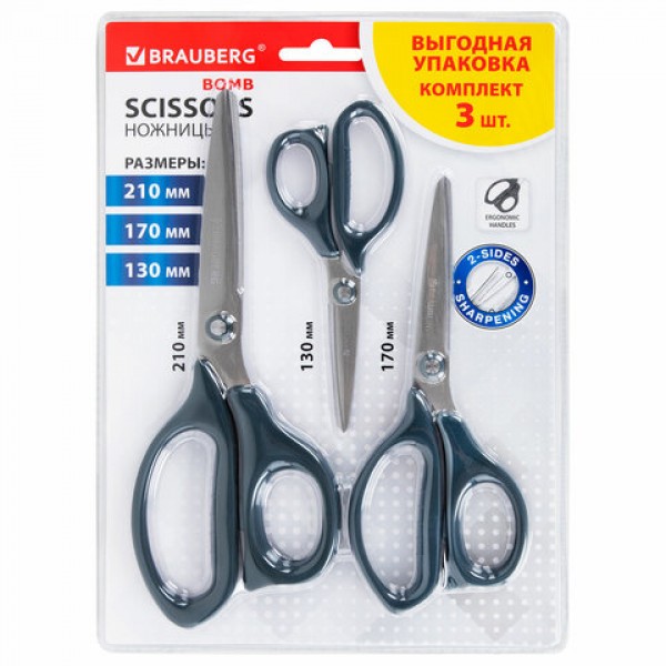 Ножницы BRAUBERG 'BOMB' 3 шт. (130, 170, 210 мм), темно-серые ручки, ВЫГОДНАЯ УПАКОВКА, 272980