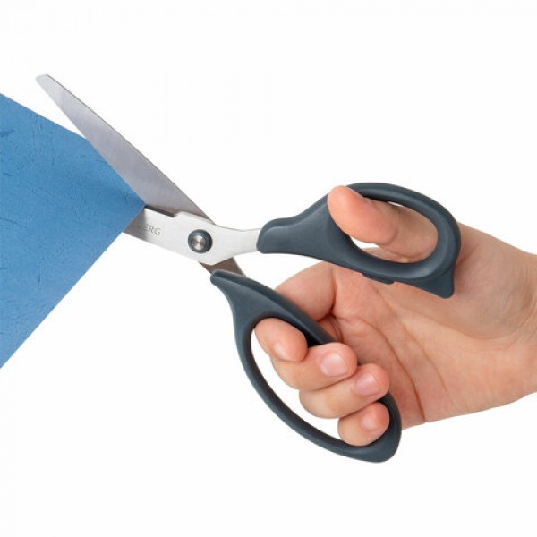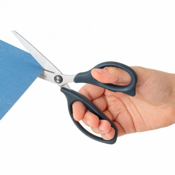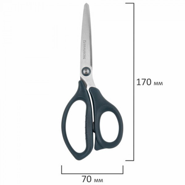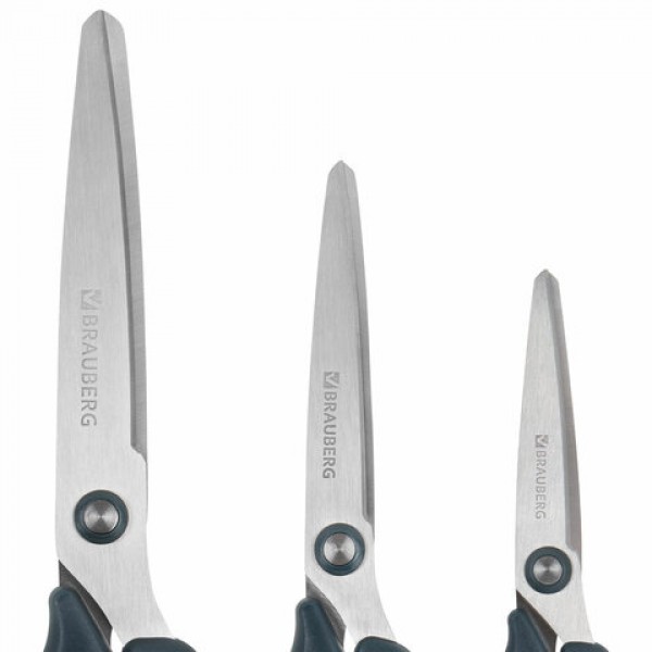 Набор универсальных ножниц BRAUBERG. Эти ножницы идеально подходят для резки бумаги, картона и других материалов, что делает их незаменимыми как в офисе, так и дома.