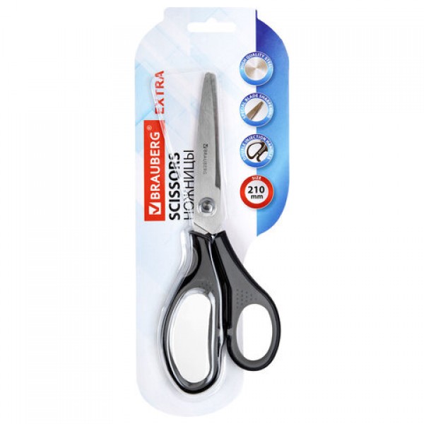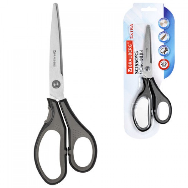 Ножницы BRAUBERG 'EXTRA', 210 мм, серо-черные, 2-х сторонняя заточка, эргономичные ручки, 237296