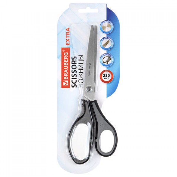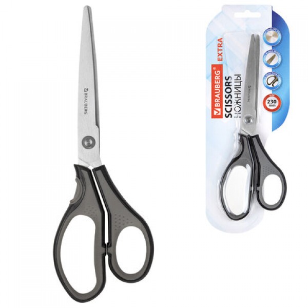 Ножницы BRAUBERG 'EXTRA', 230 мм, серо-черные, 2-сторонняя заточка, эргономичные ручки, 237297
