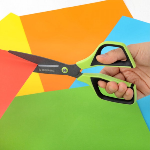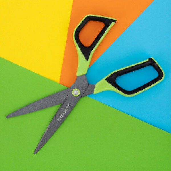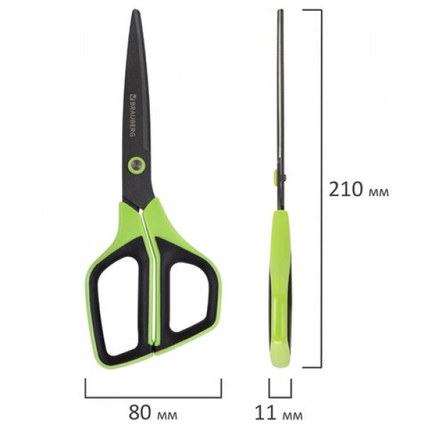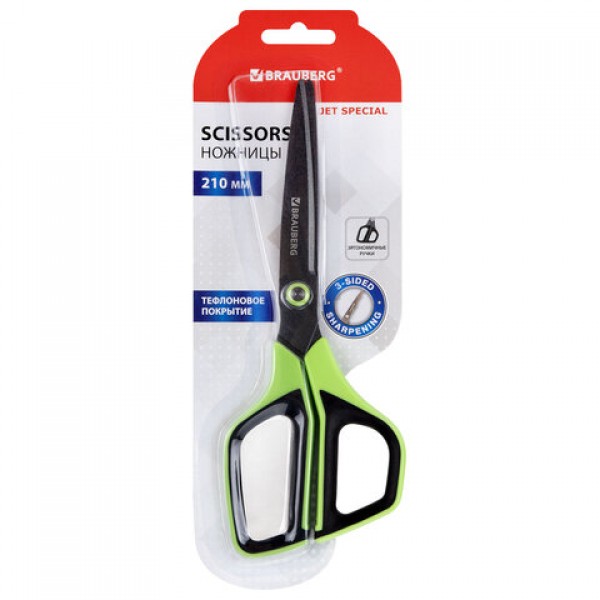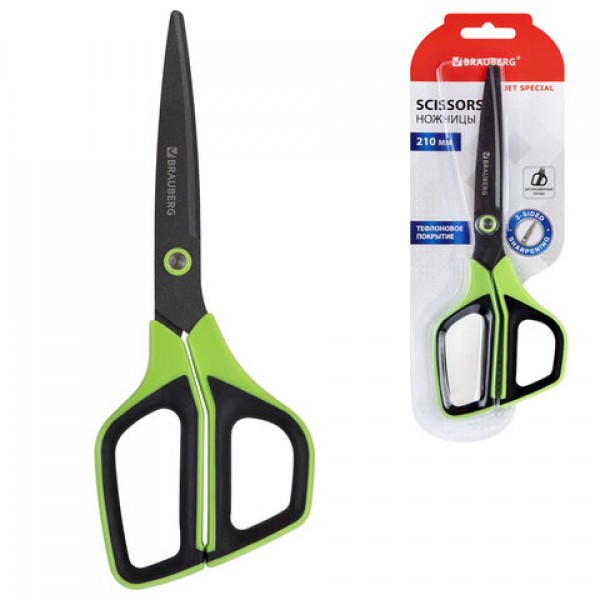 Ножницы BRAUBERG 'JET Special', салатовые, 210 мм, 3-сторонняя заточка, тефлоновое покрытие, 238852