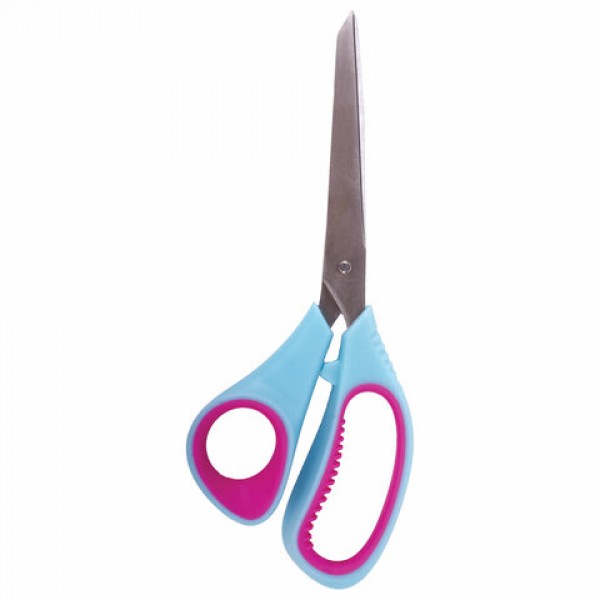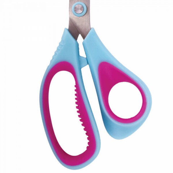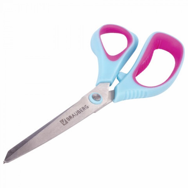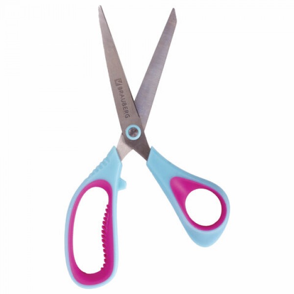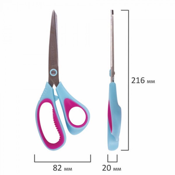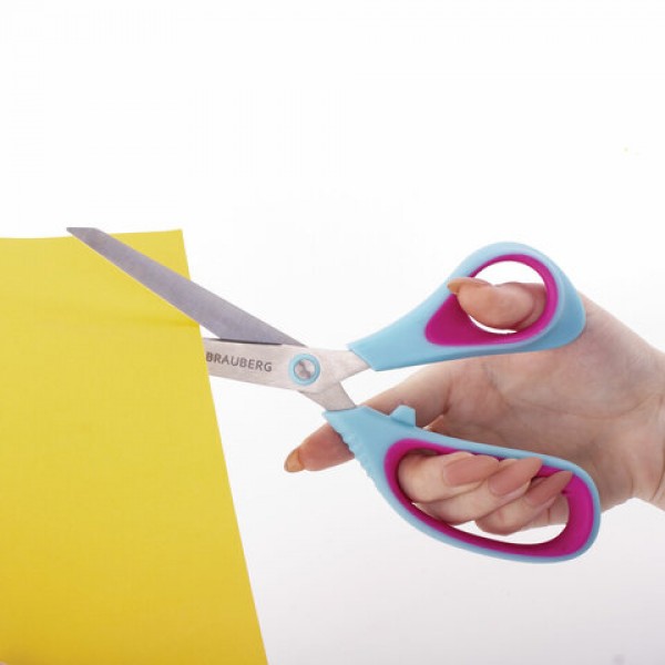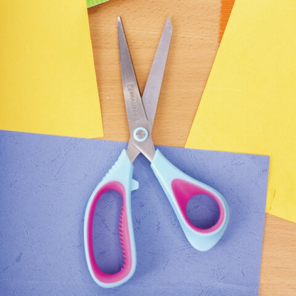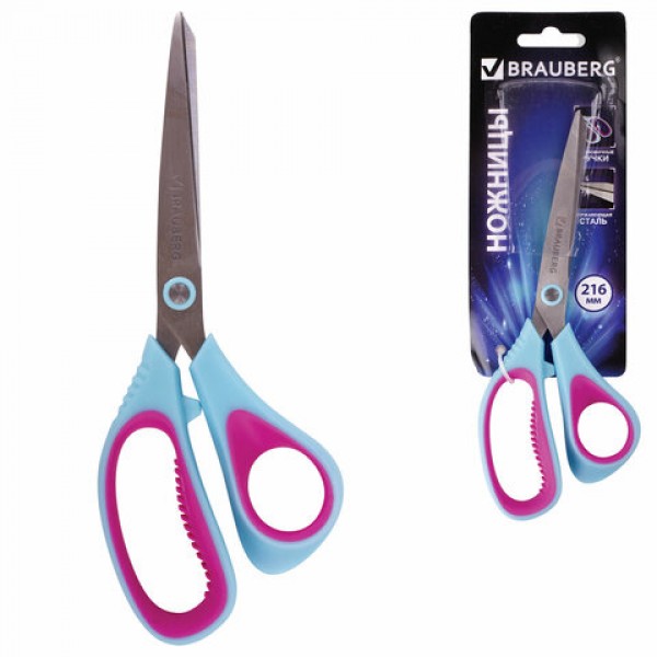 Ножницы BRAUBERG 'Universal', 216 мм бирюзово-фиолетовые, ассиметричные, ребристые резиновые вставки, 236453