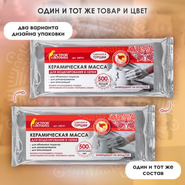Масса керамическая для лепки ОСТРОВ СОКРОВИЩ, 500 г, натуральный цвет, 228731