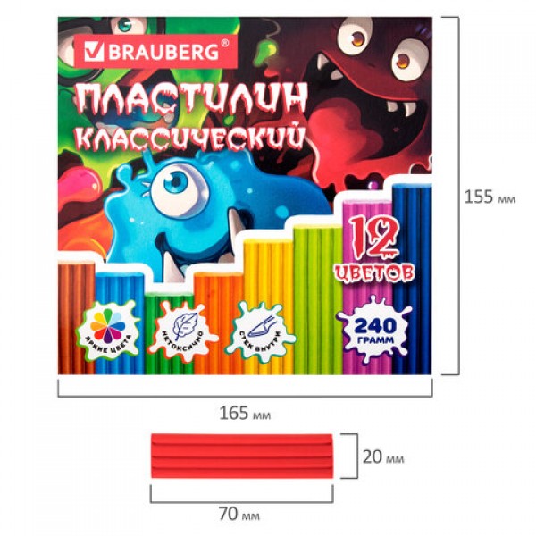 Классический пластилин BRAUBERG предназначен для лепки на уроках труда в школе, детском саду и дома. Творческие занятия с пластилином способствуют развитию мелкой моторики рук и образного мышления у детей.