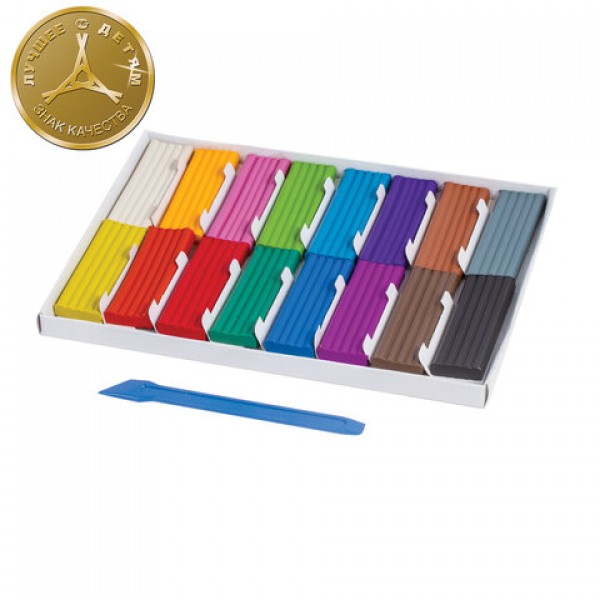 Пластилин классический ЮНЛАНДИЯ 'ВЕСЁЛЫЙ ШМЕЛЬ', 16 цветов, 240 г, СО СТЕКОМ, 104810