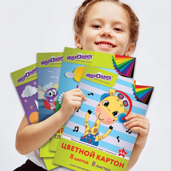 Набор цветной бумаги и картона ЮНЛАНДИЯ предназначен для творчества и хобби и может использоваться детьми с трехлетнего возраста. Рекомендован для уроков труда и технологии. Творческая инструкция по созданию аппликации на обороте.