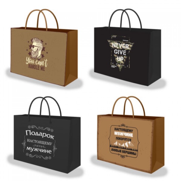 Пакет подарочный (1 штука) 45х13х33 см (XL), 'For Real Man', ассорти, крафт, ЗОЛОТАЯ СКАЗКА, 700827